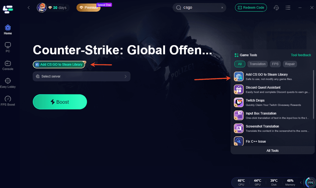 Скачайте и откройте LagoFast.