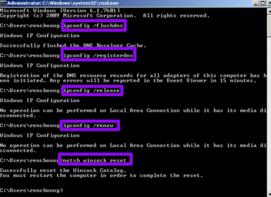 Шаг 5. В завершение введите netsh winsock reset и нажмите Enter, затем перезагрузите ПК.