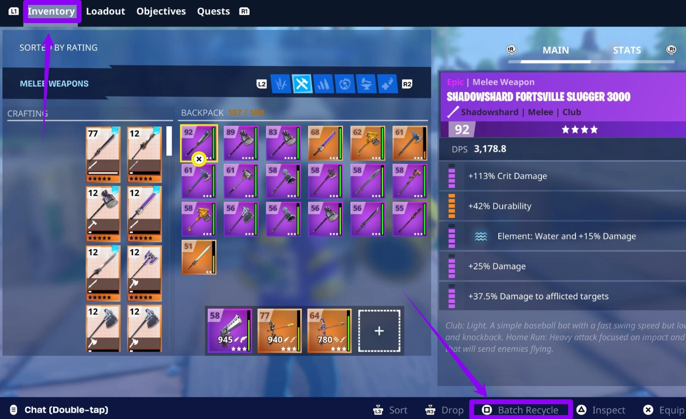 Шаг 3. Переработайте или выбросьте ненужные серые/зелёные предметы или лишние материалы низкого уровня для крафта (например, Wood или Rough Ore).