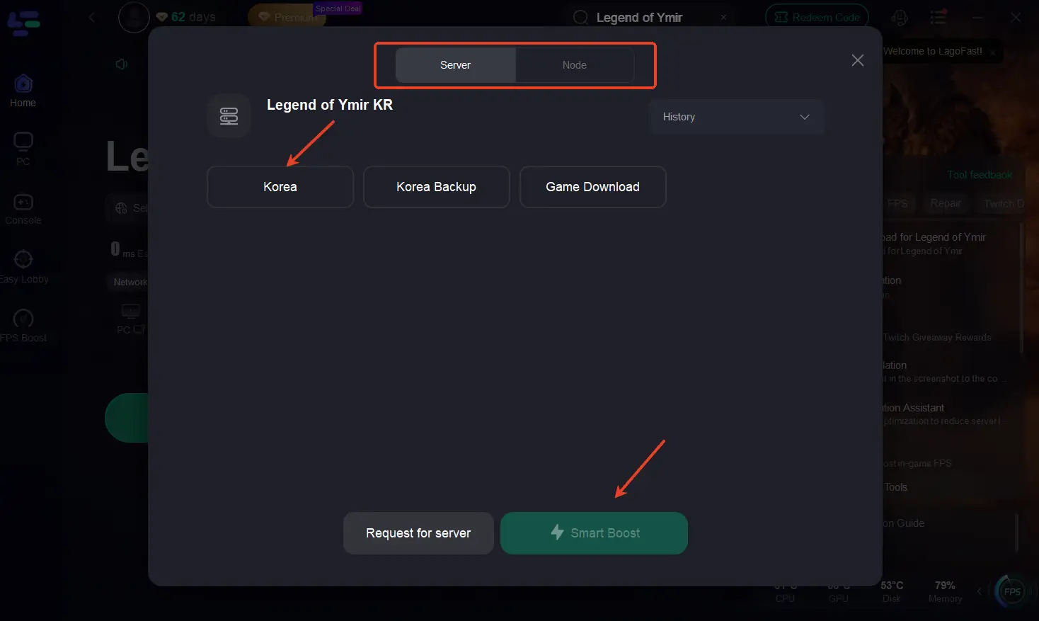 Шаг 2. Выберите оптимальный глобальный сервер и нажмите Boost.