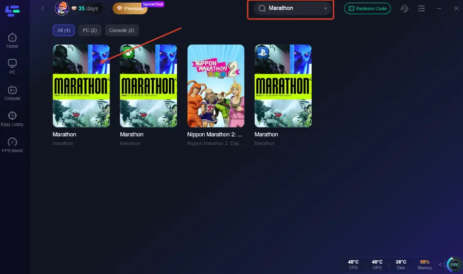 Откройте LagoFast и найдите Marathon в библиотеке игр.