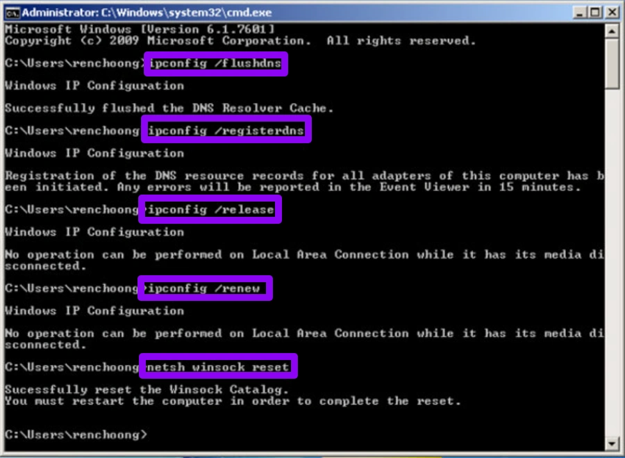 Шаг 3. Введите ipconfig /release, затем ipconfig /renew.