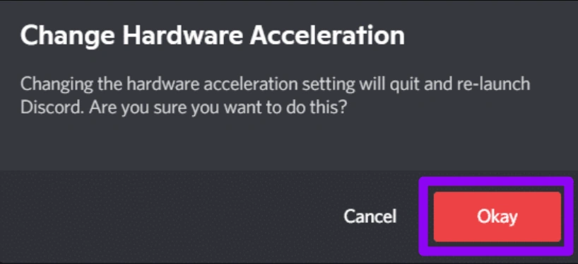 Шаг 4. Нажмите «Okay», чтобы перезапустить Discord.
