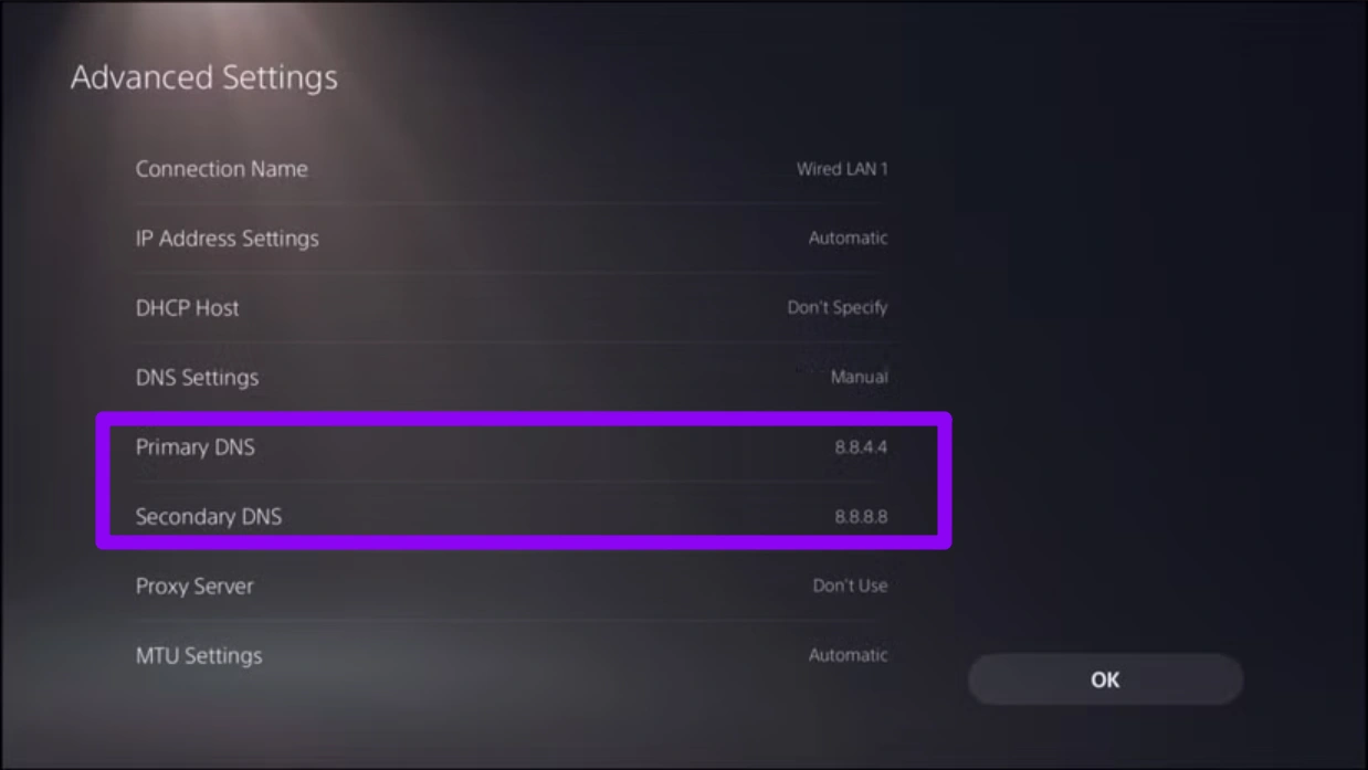 Шаг 4. Установите Primary DNS: 8.8.8.8, Secondary DNS: 8.8.4.4.