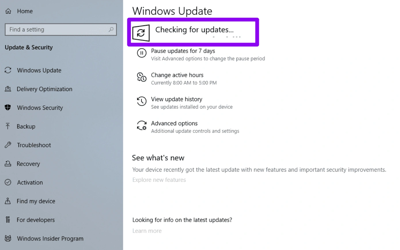 Шаг 4: Нажмите «Check for updates» и установите все ожидающие обновления системы.