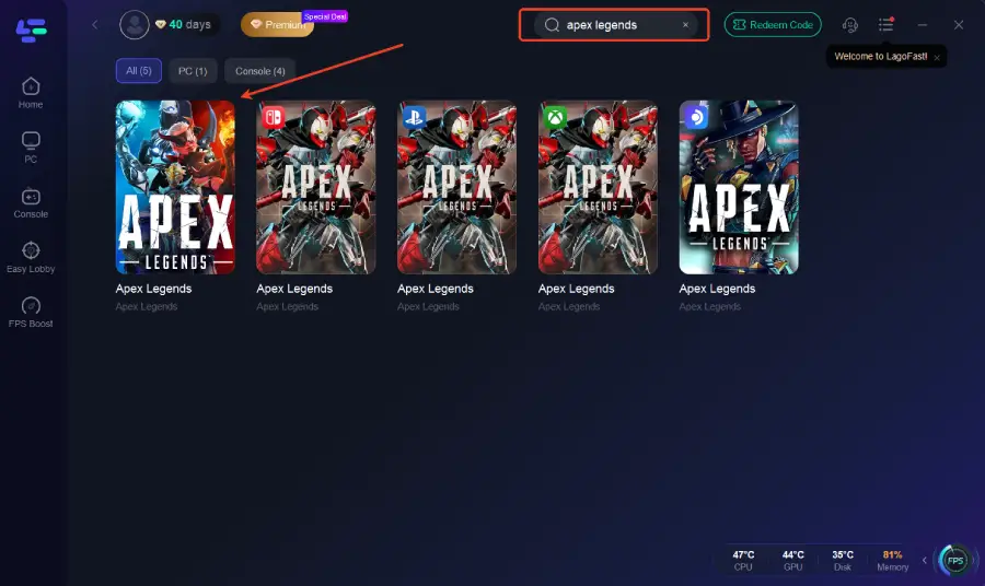 В Apex Legends проблемы с сетевым лагом, зависаниями и подключением могут сильно испортить ваш игровой опыт. Но не беспокойтесь — LagoFast готов прийти на помощь! LagoFast — это отличный универсальный бустер для игр, созданный для решения этих проблем. Он помогает уменьшить лаги, повысить FPS, переключать серверы и стабилизировать ваше сетевое соединение, делая ваш игровой процесс более плавным и приятным. Этот game booster, которому доверяют геймеры по всему миру, является решением для устранения различных проблем в играх. С выделенными глобальными маршрутами и поддержкой множества игр LagoFast — это настоящий помощник для игроков Apex Legends, сталкивающихся с потерей пакетов. Это ваш надежный союзник для оптимизации вашей игровой среды и преодоления проблем с подключением.