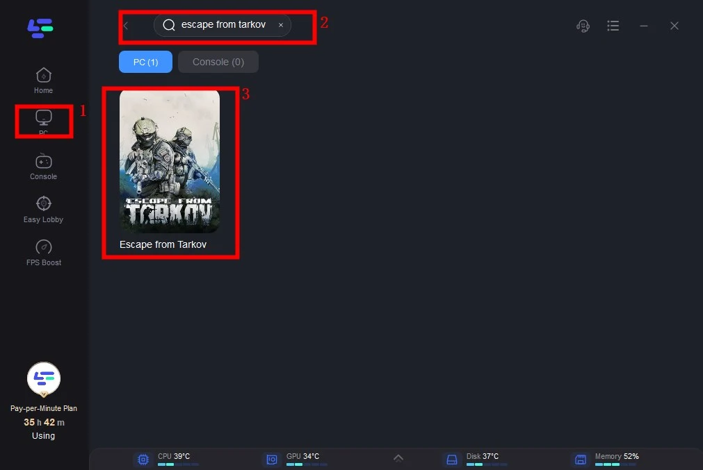 Шаг 2: Введите “Escape From Tarkov” и нажмите на результат.